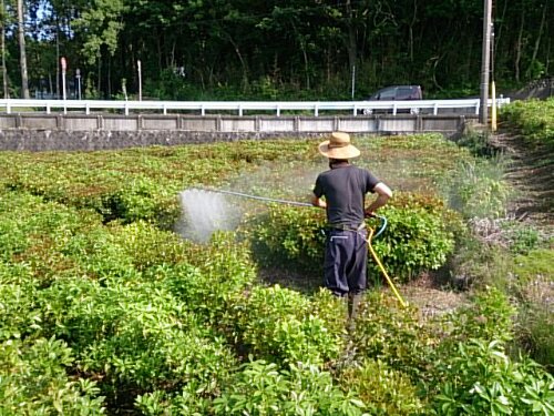消毒! 今日は朝から防除です。虫が入ってから殺虫剤を撒いても遅いので、先手先手で予防します。 虫を防いで駆除するから「防除」と言います。 今日も6時から1500リットル撒いてます。 最近、毎日、朝6時から仕事です… 次は除草剤を撒かないと(*_*;